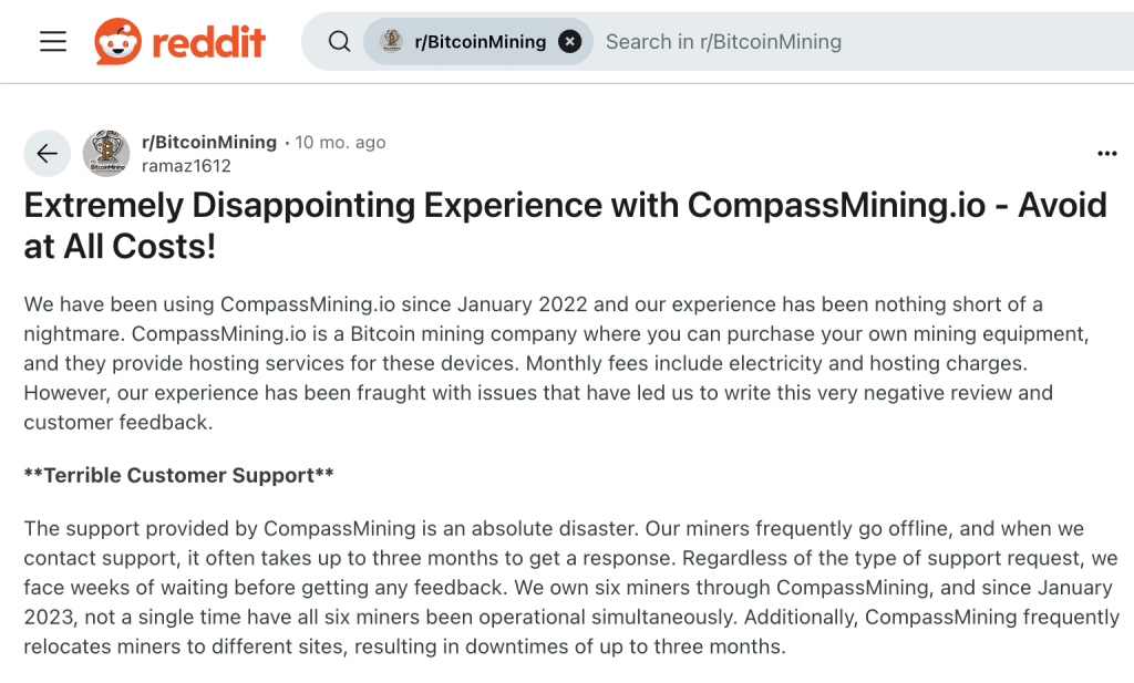 Reddit: Extremely Disappointing Experience with CompassMining.io - Avoid at All Costs!