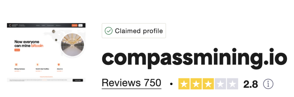 CompassMining has a 2.8 out of 5 rating on trustpilot